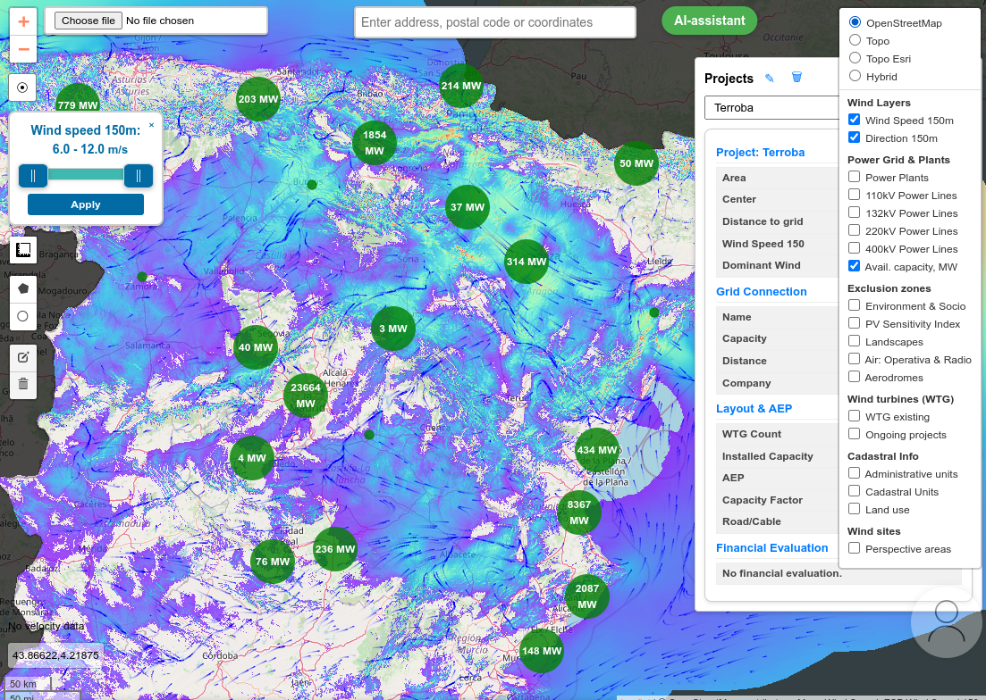 Quickly assess if your land is viable for a wind project. We analyze wind resources, grid proximity, environmental impact, and other key indicators in seconds.